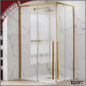 Cabina dus Santorini 120×70 cm cu profile aur periat intrare pe colt