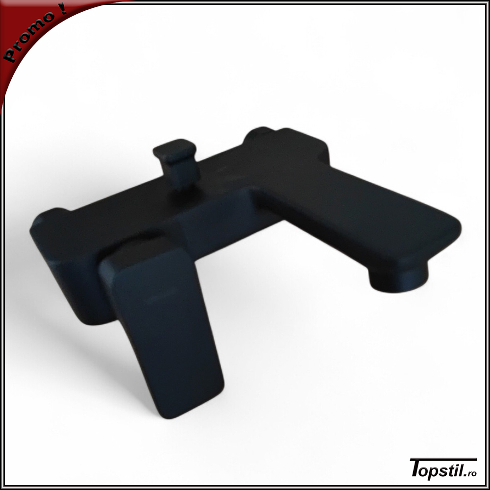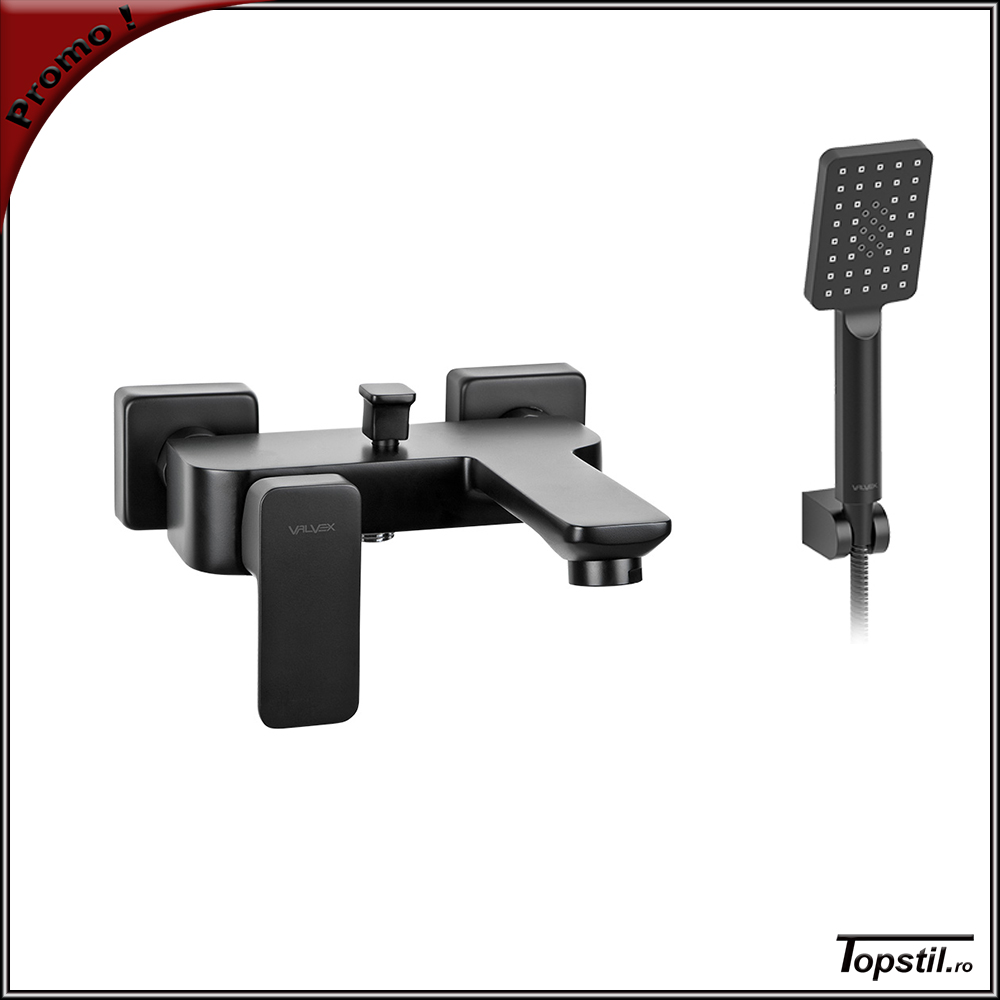 Baterie cada Loft culoare neagra,finisaj mat, cu accesorii – para dus cu trei jeturi,furtun cu protectie otel 150 cm,suport de perete.