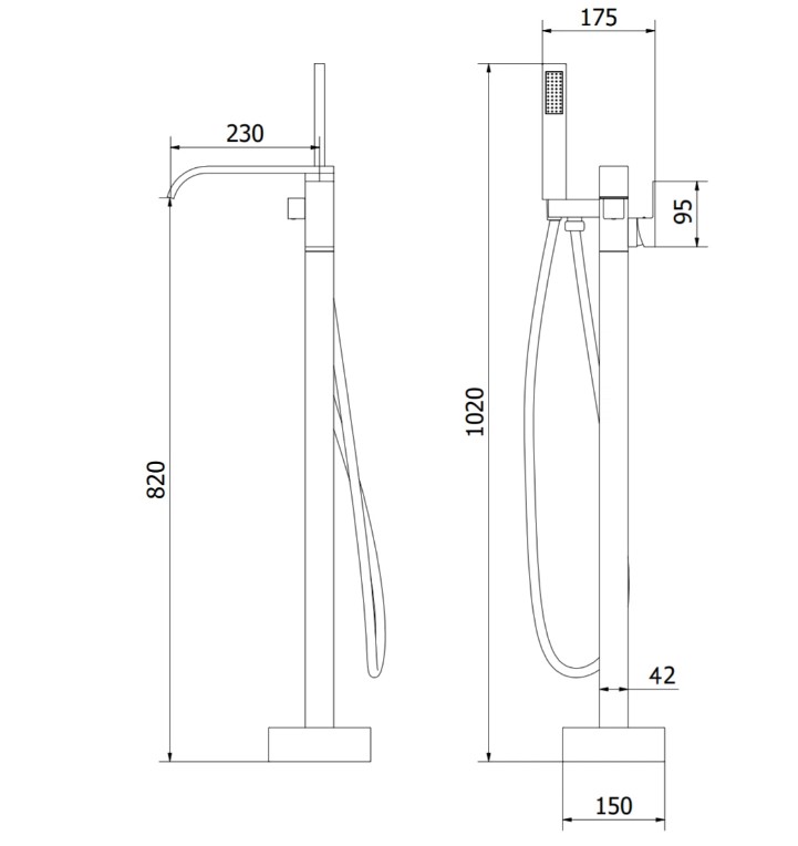 Baterie cada stativa pe podea Kono neagra,finisaj mat.