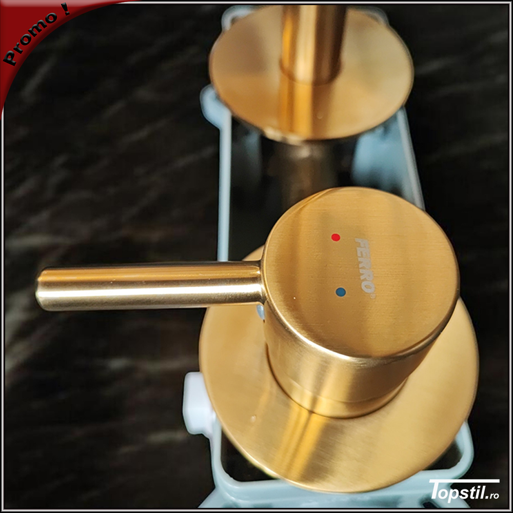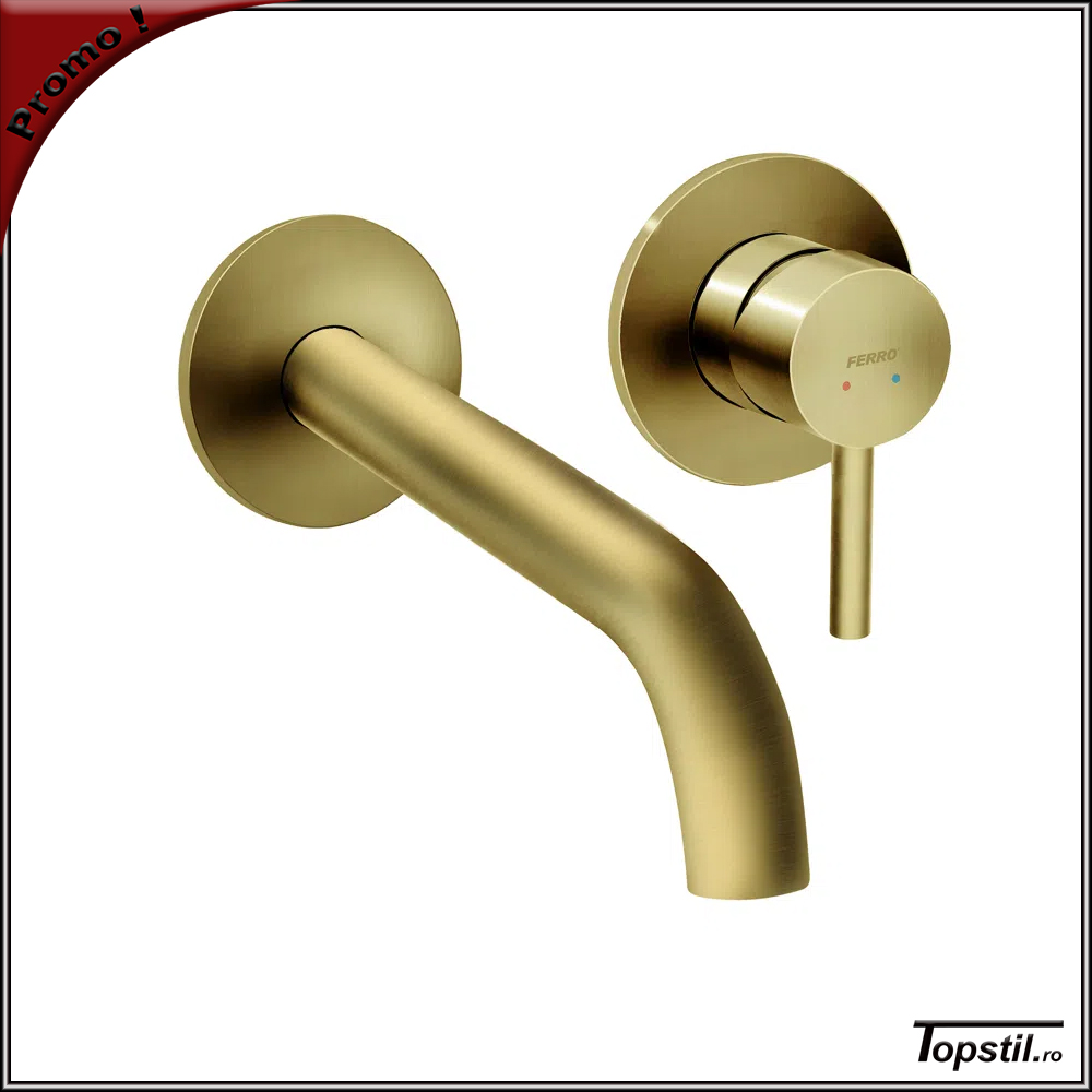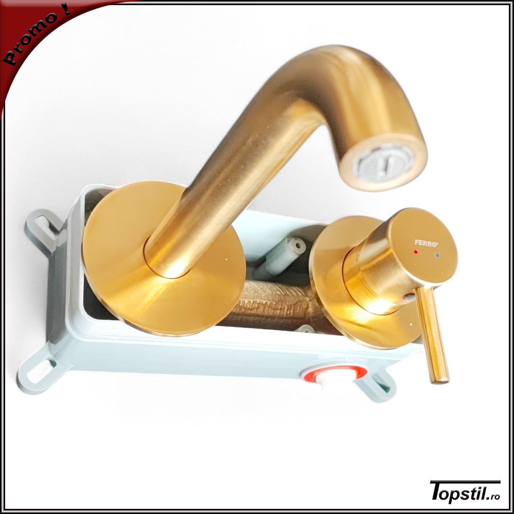 Baterie lavoar din perete Ferro Ciriculus finisaj auriu periat.