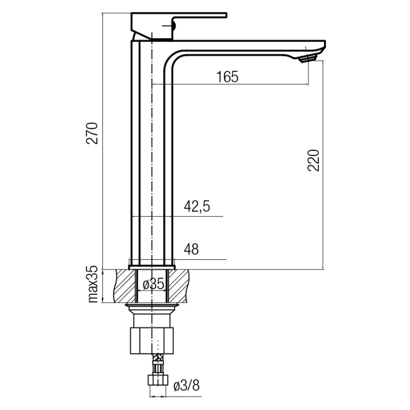 Baterie lavoar Loft inalta, cu montaj pe blat.