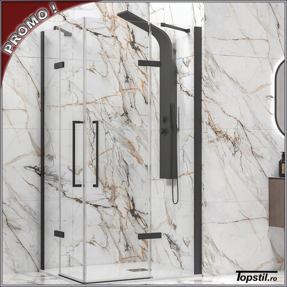 Cabina dus patrata Santorini Pro 120×120 cm cu profile negre,sticla de 8 mm