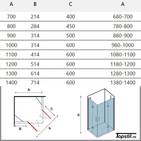 Sticla securizata de 8 mm cu tratament anticalcar pe ambele parti.