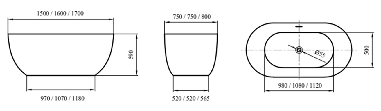 Cada de baie ovala Aura freestanding 170 cm