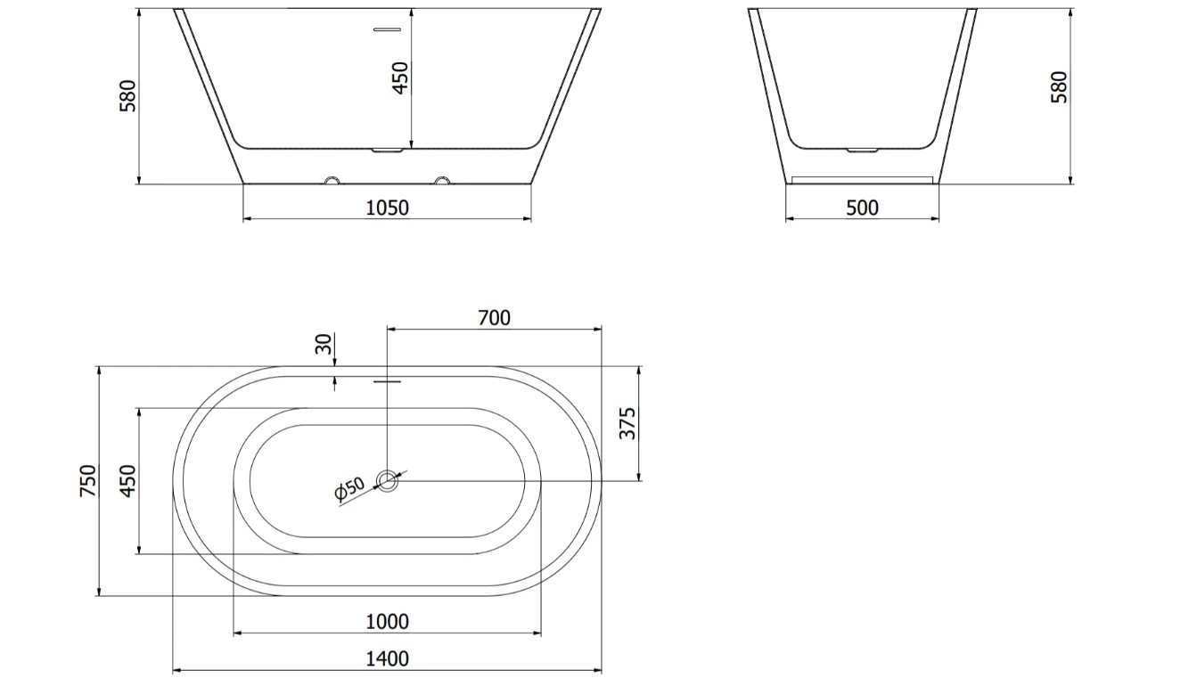 Cada de baie Mireya freestanding 140×75 cm cu sifon alb