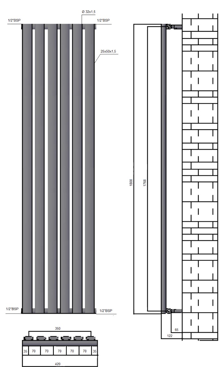 Calorifer baie inalt Divina finisaj crom lucios, 1800×420 mm.