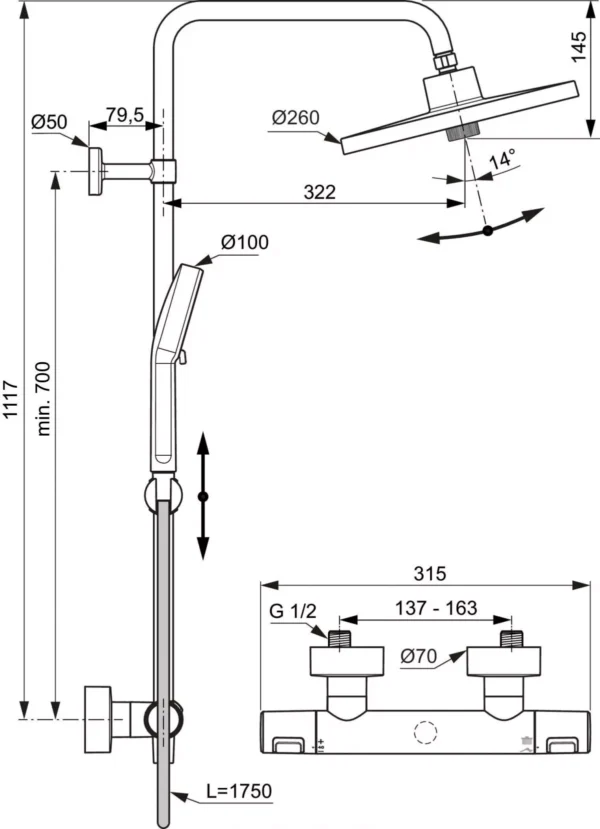 Sistem de cada-dus cu termostat Ideal Rain Pro