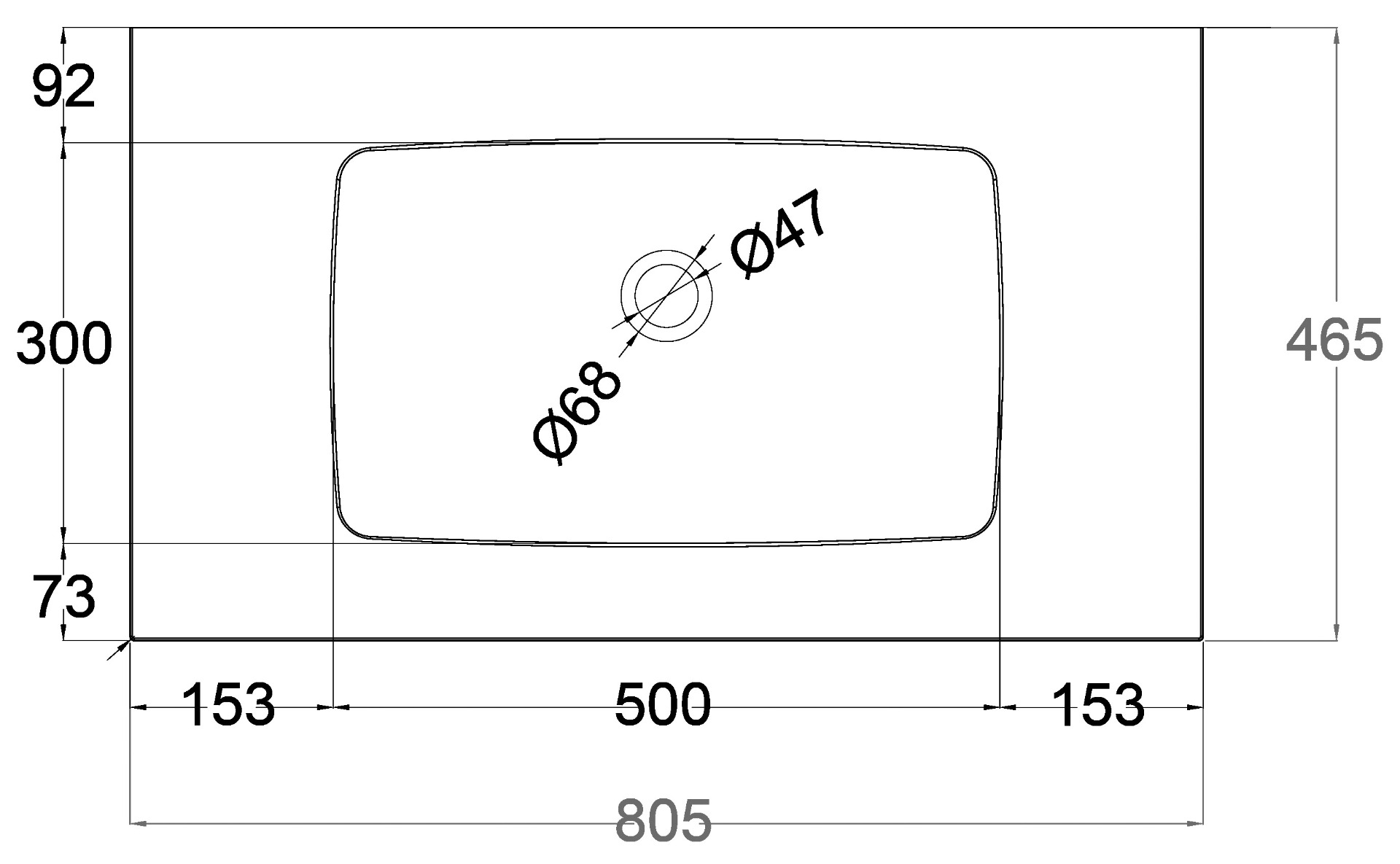 Lavoar compozit Deciso finisaj negru satinat,mat, 80 x 46 cm,fara preaplin si fara orificiu baterie (se executa la cerere,este predefinit pe partea dorsala).