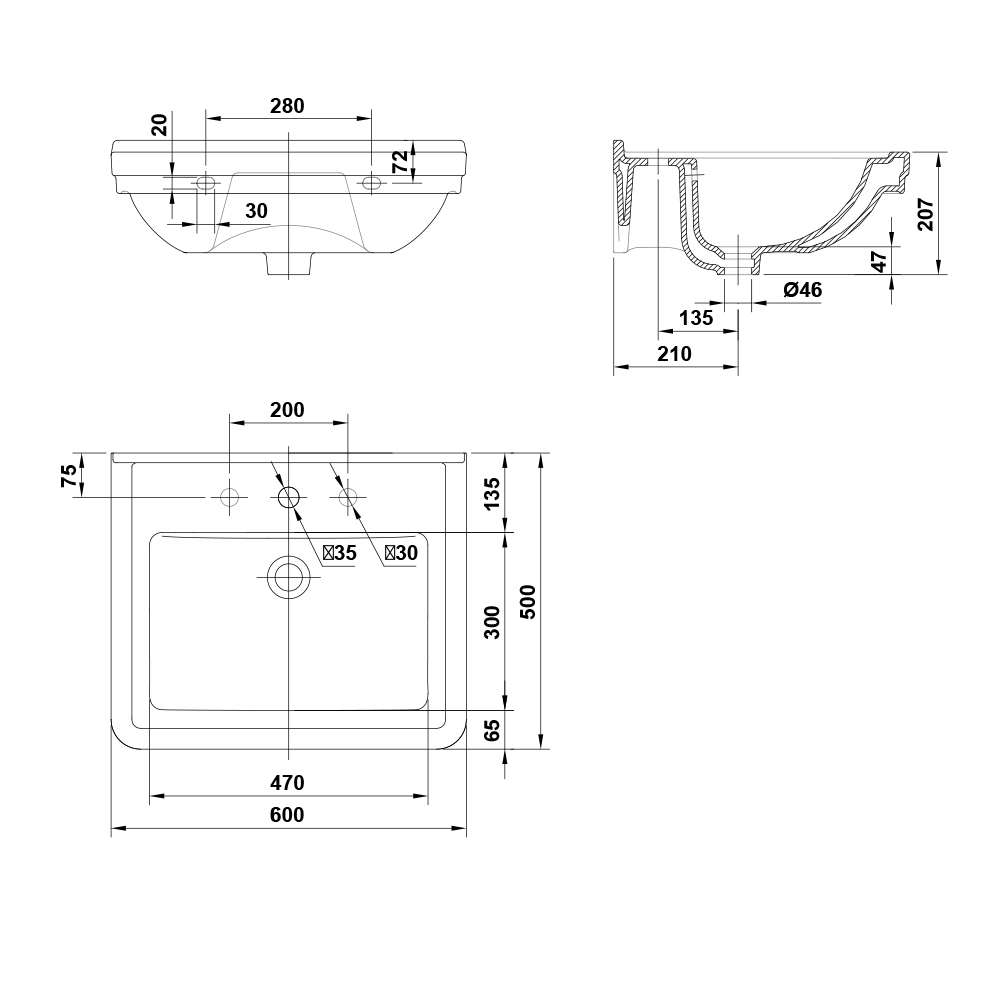 Lavoar dreptunghiular pe blat Strada fara orificiu baterie