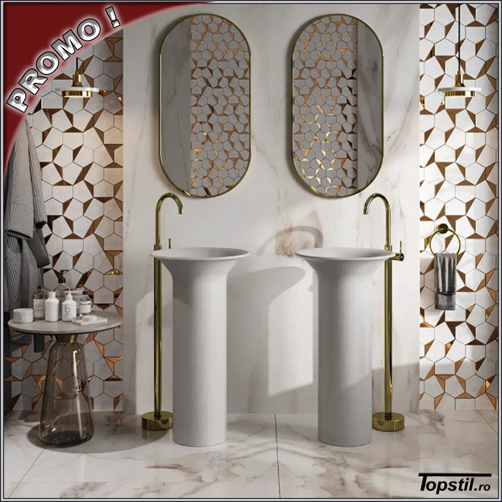 Lavoar cilindric Grenoble stativ pe podea finisaj auriu mat
