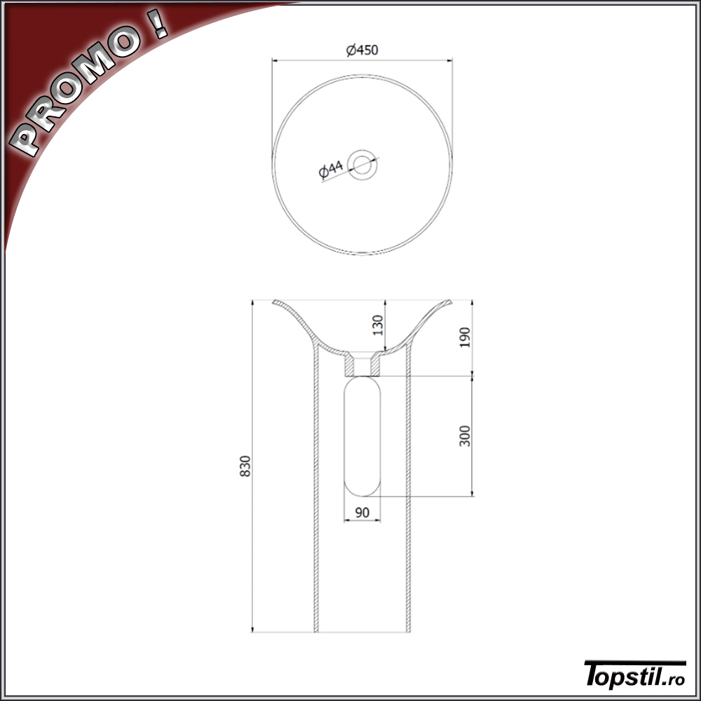 Lavoar stativ pe podea Letta rotund,diametru cuva 45 cm,din compozit.