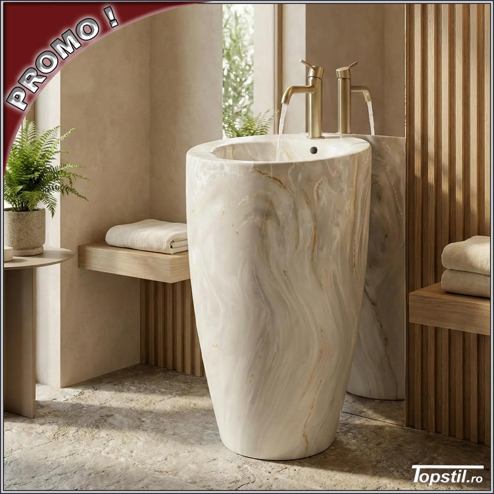 Lavoar stativ pe podea Nazzaro ceramic cu textura marmura.