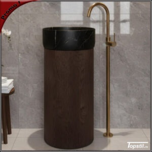Lavoar cilindric stativ Mateo textura lemn si marmura