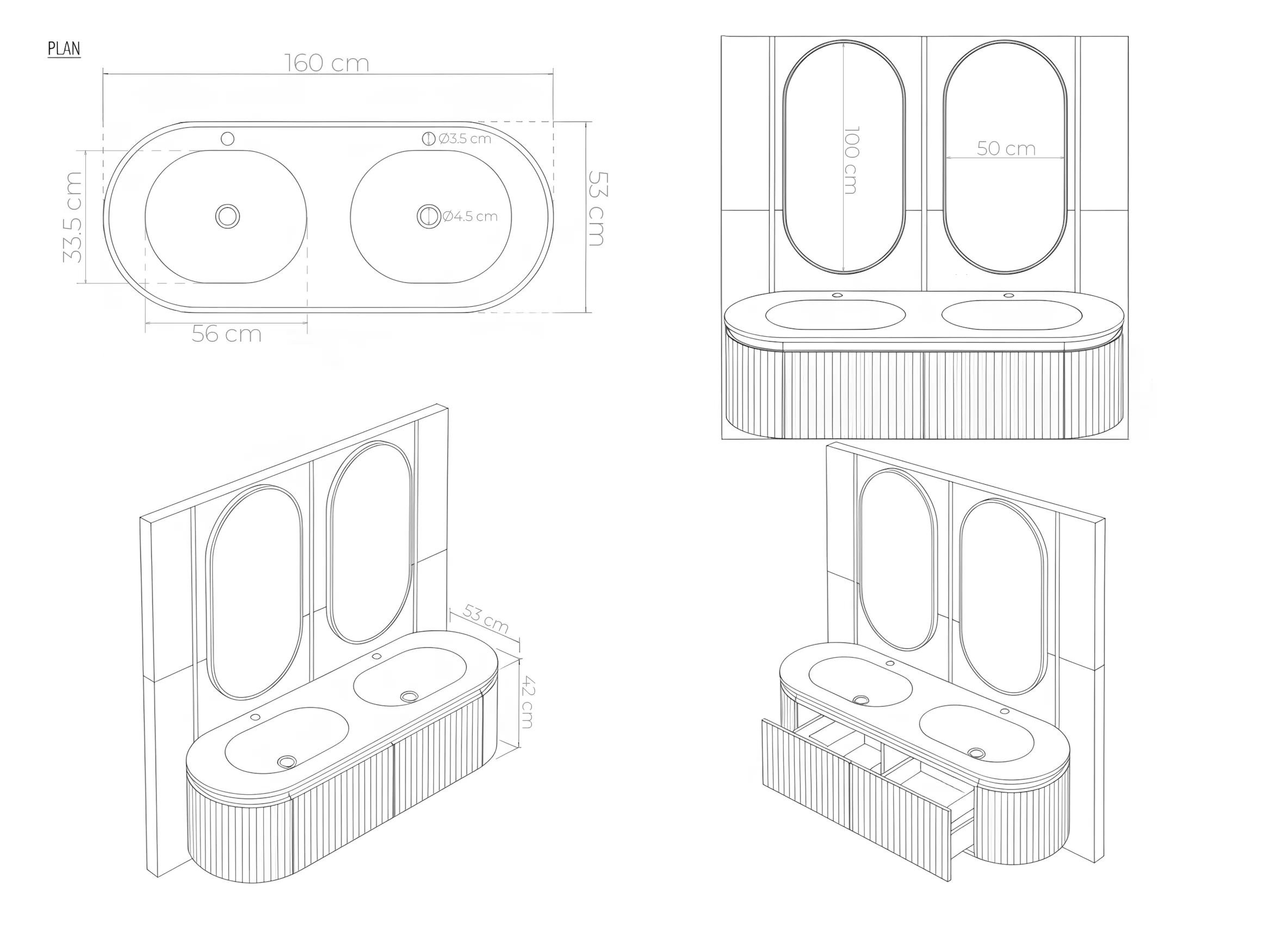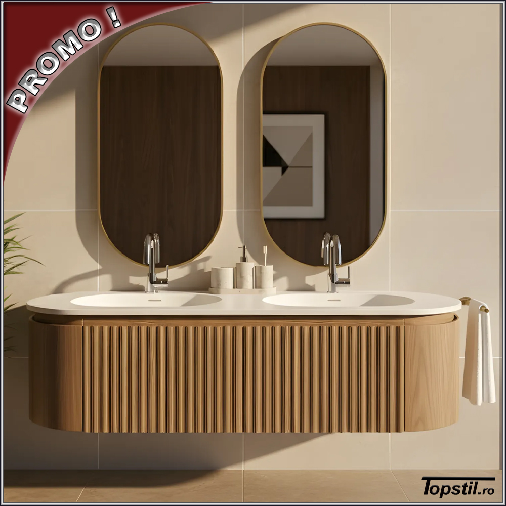 Mobilier baie suspendat dublu Millora 160 cm din lemn bambus