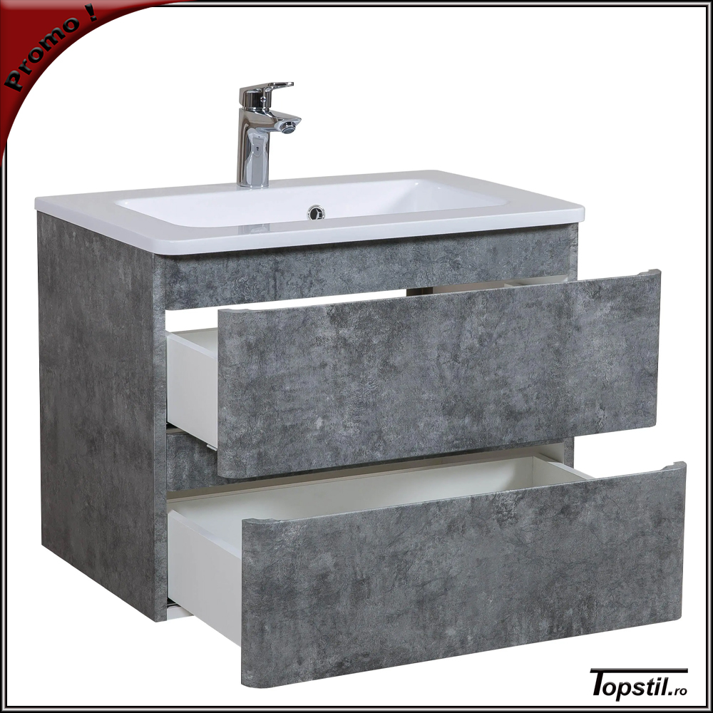 Fronturi MDF infoliat,textura beton,sertare cu inchidere amortizata
