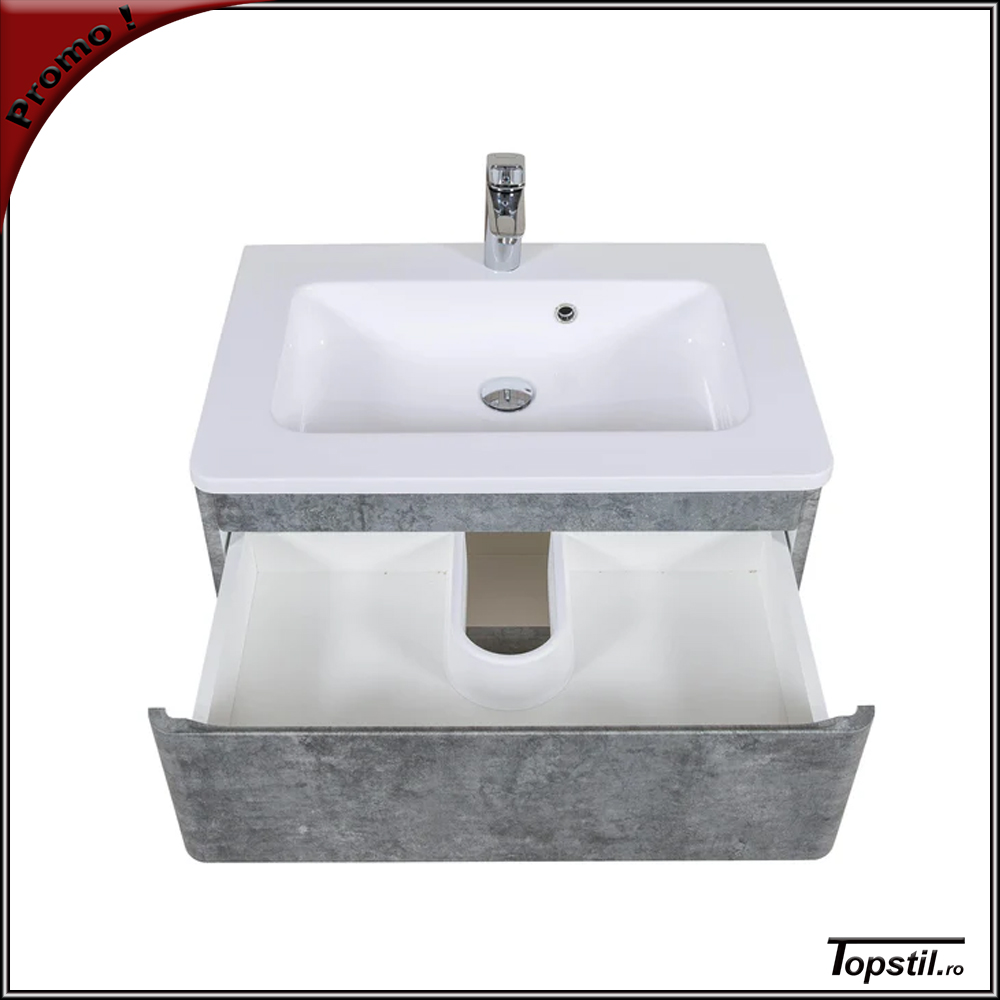 Set mobilier baie suspendat Merlin 60×43 cm, cu lavoar compozit.