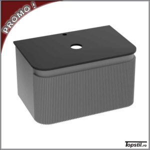 Mobilier baie suspendat Milla 80 cm gri mat pentru lavoar pe blat,front riflat,cu un sertar