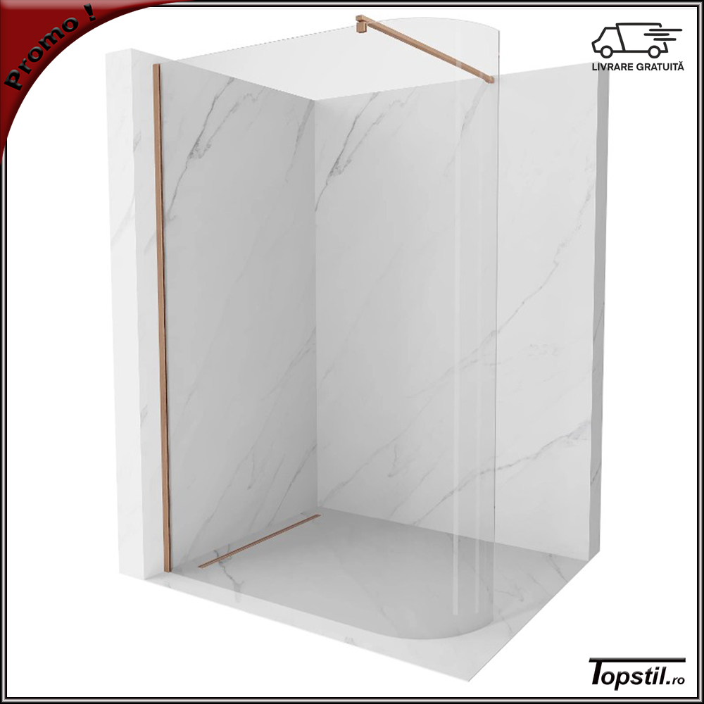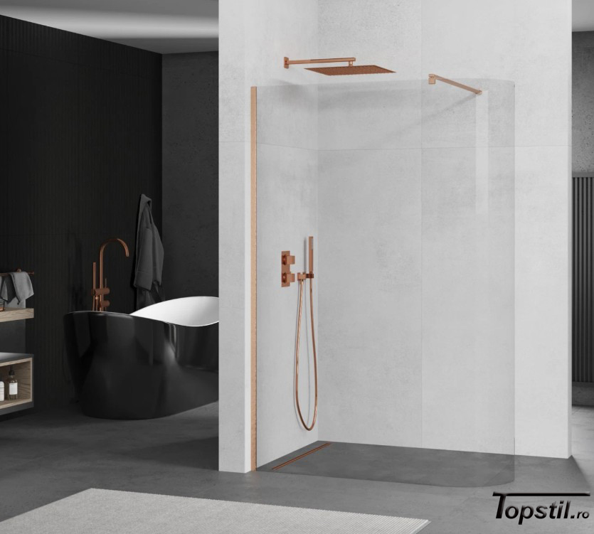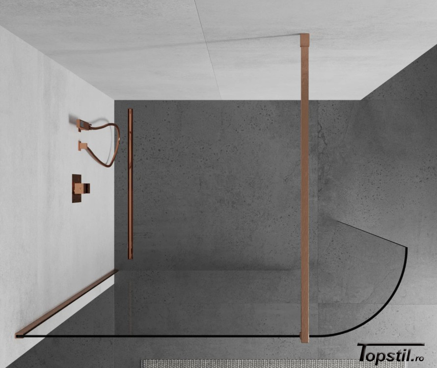 Paravan dus curbat 130×200 cm din sticla 8 mm cu profil cupru