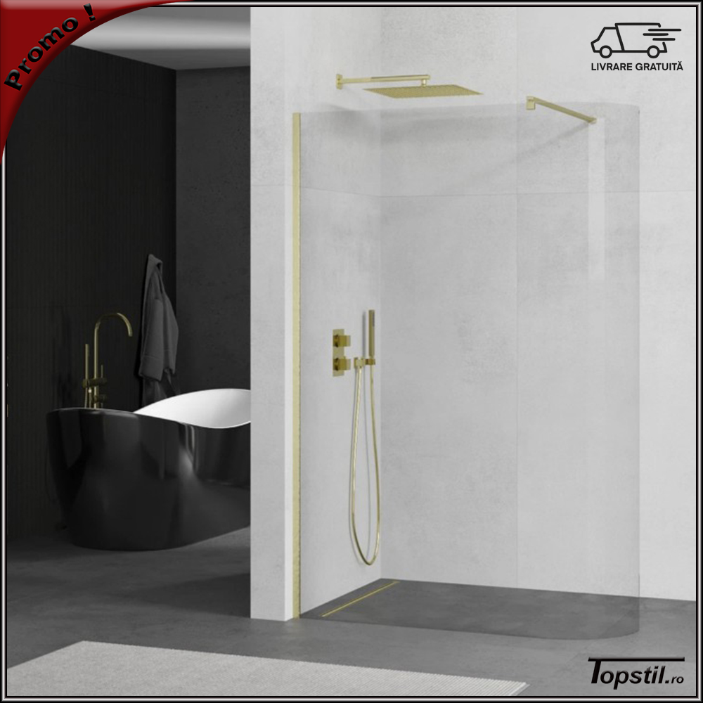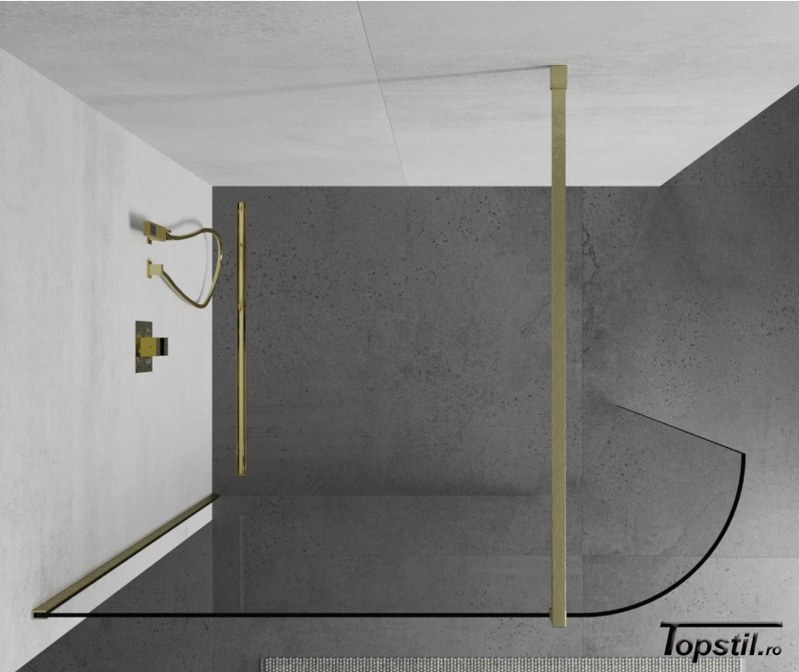 Paravan dus curbat 90×200 cm cu profil auriu periat,sticla 8 mm