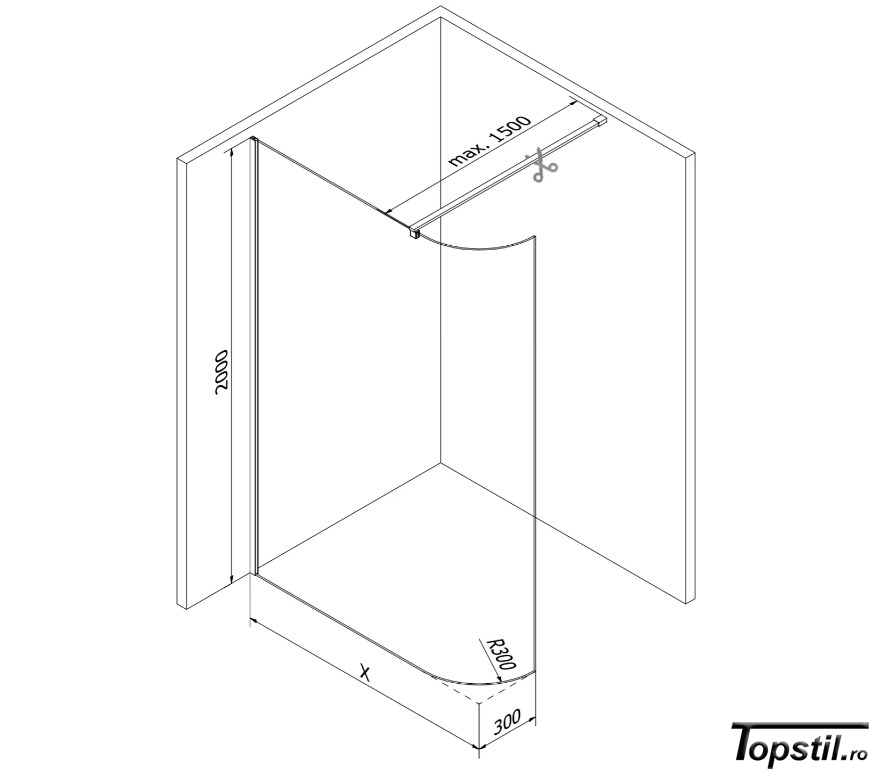 Paravan sticla pentru dus Walk-In 120 cm cu intrare prin doua parti
