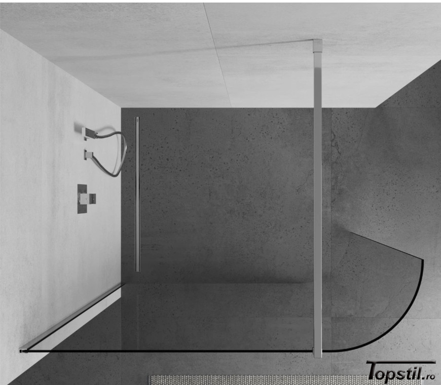 Paravan dus din sticla securizata de 8 mm tratata anticalcar cu margine curbata.