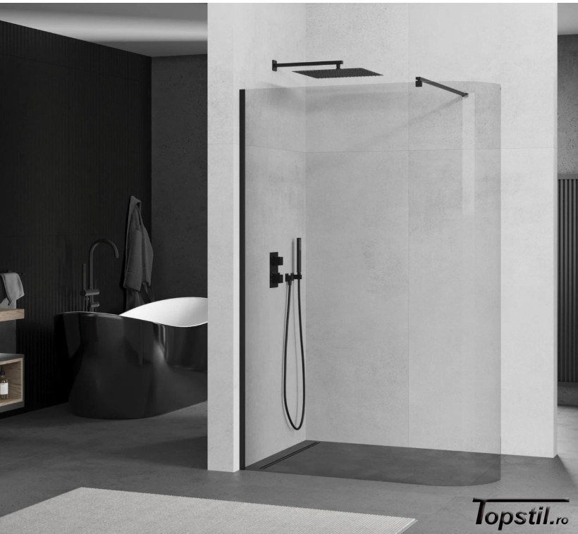 Paravan dus Walkin 80×200 cm din sticla de 10 mm cu profil negru