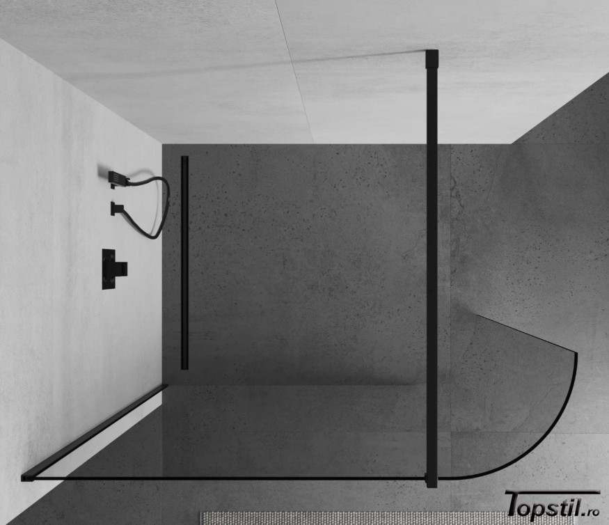 Paravan dus curbat 90×200 cm cu profil negru,sticla 8 mm