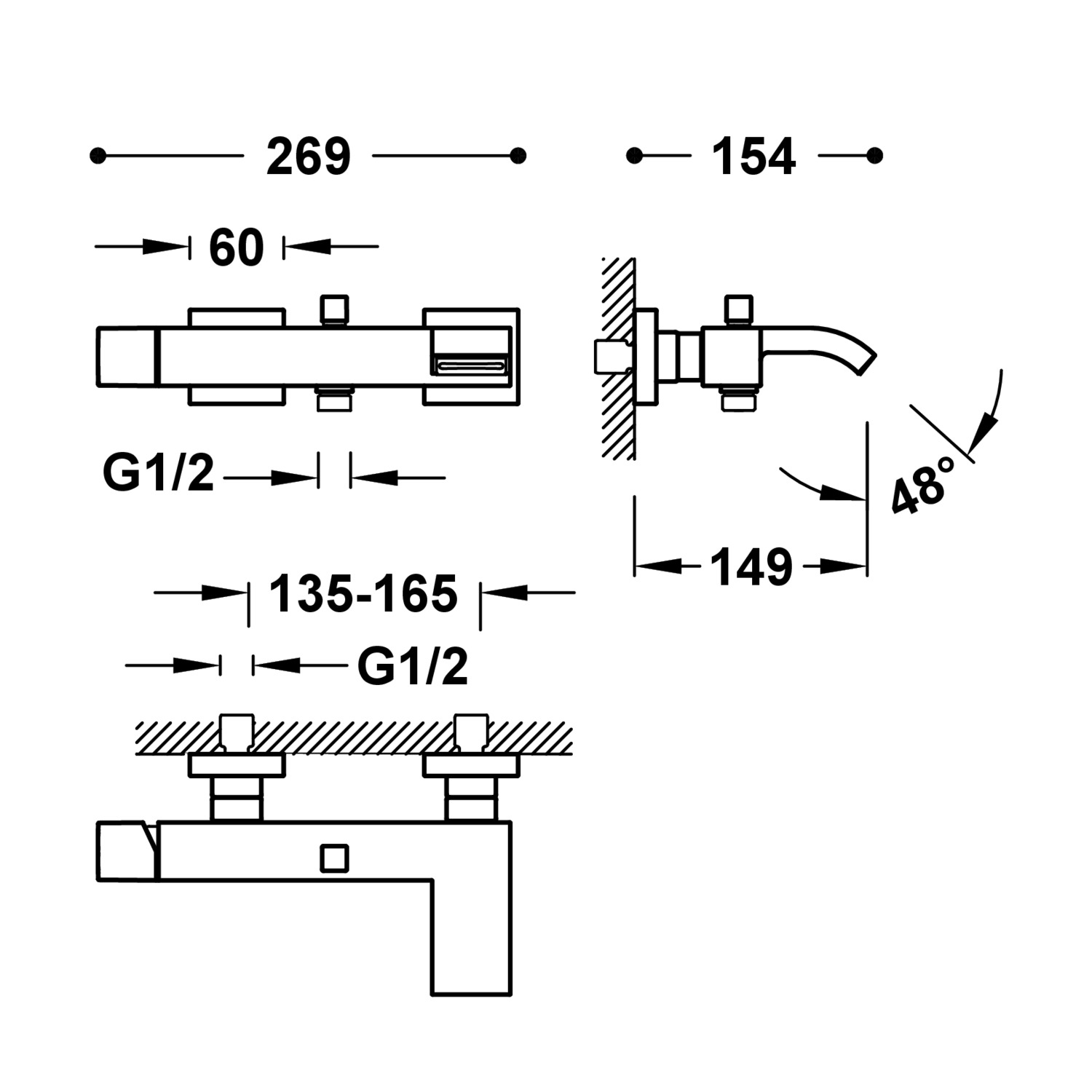 Baterie lavoar Cuadro inalta,negru mat.