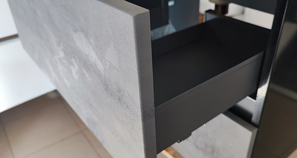 Sertare cu inchidere soft-close,feronerie premium,cu rama metalica.