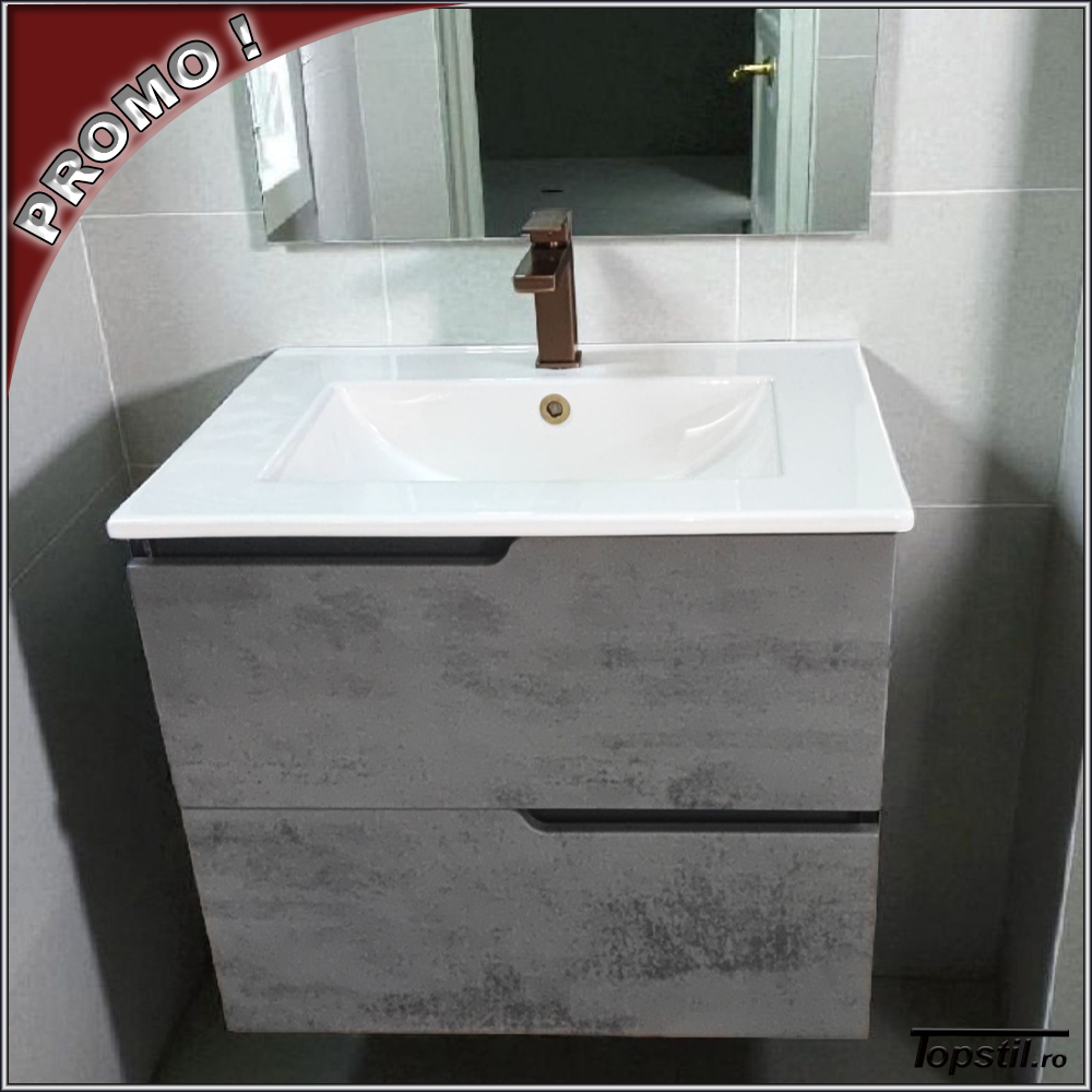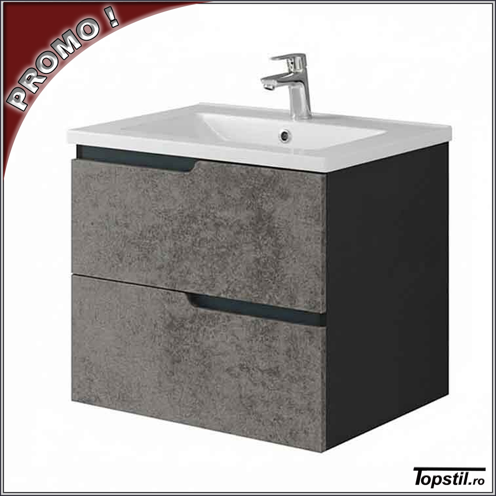 Set mobilier baie suspendat 60 cm cu fronturi textura ciment