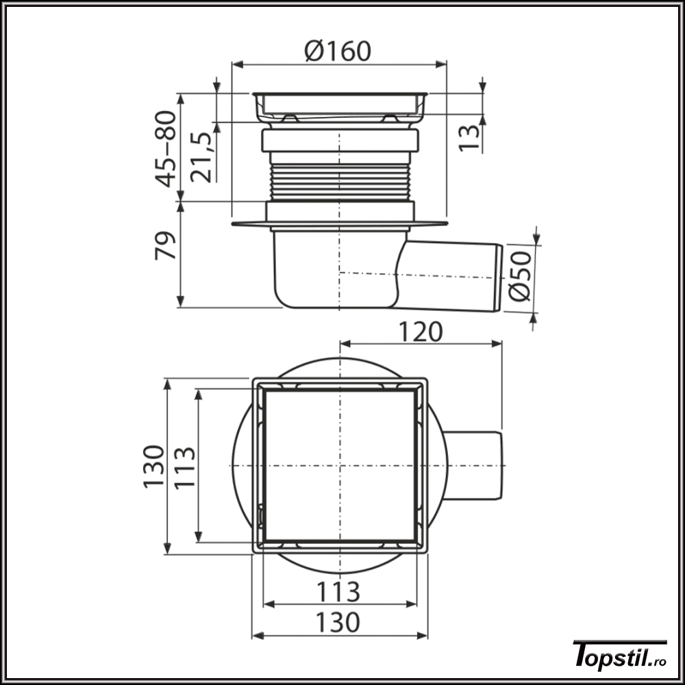Sifon pardosea faiantabil Alca APV140 patrat 130×130 mm