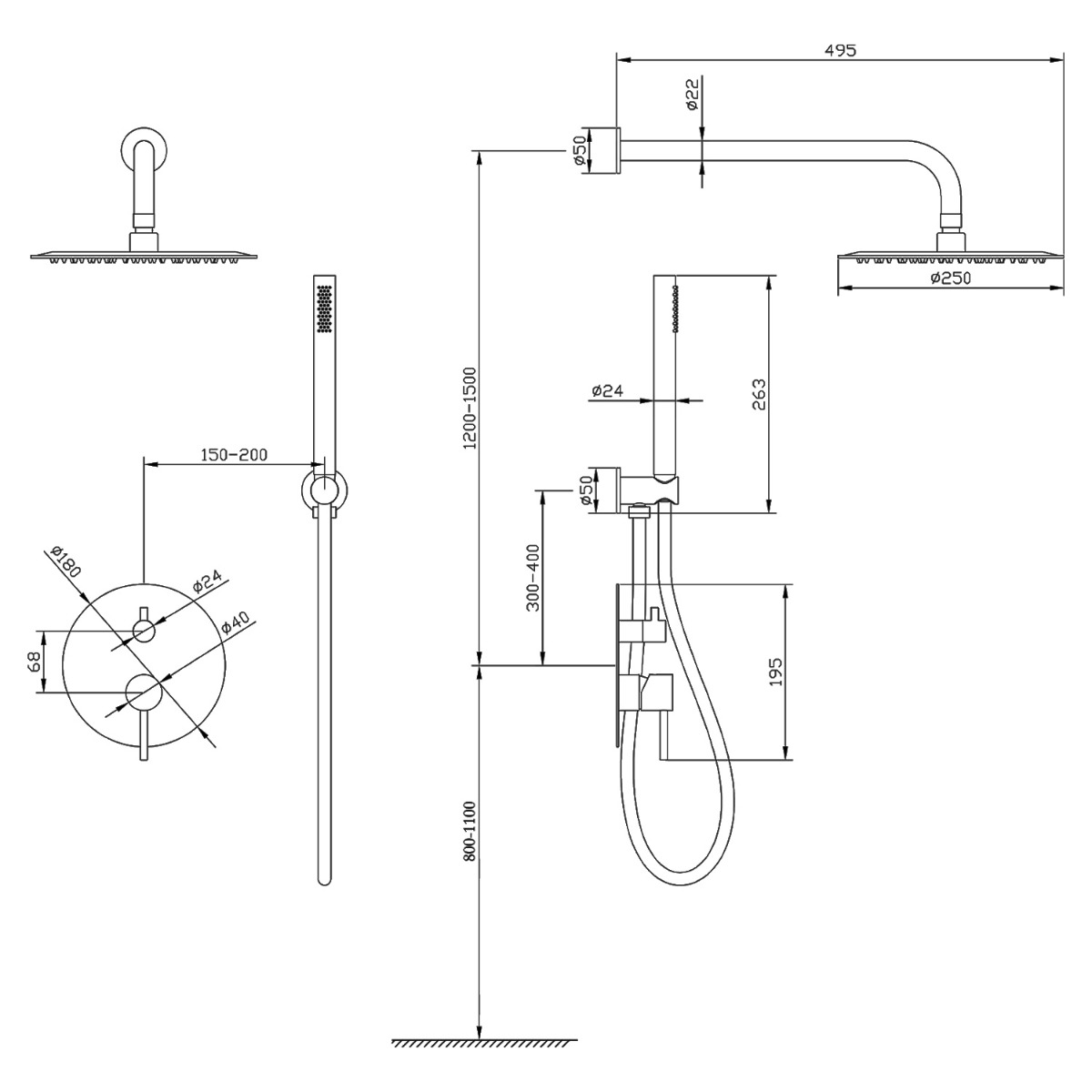 Sistem de dus ingropat B-System cu termostat,ploaie si cascada