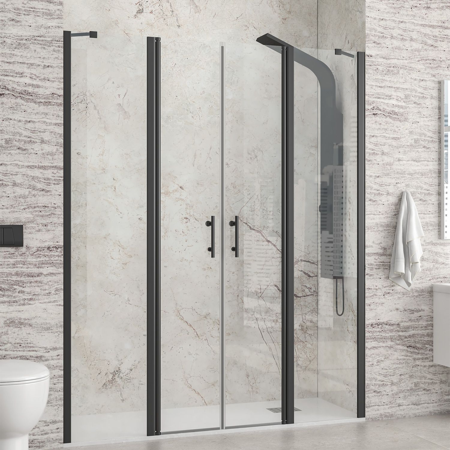 Paravan dus cu usa Cadura cu profil negru 140 x 200 cm