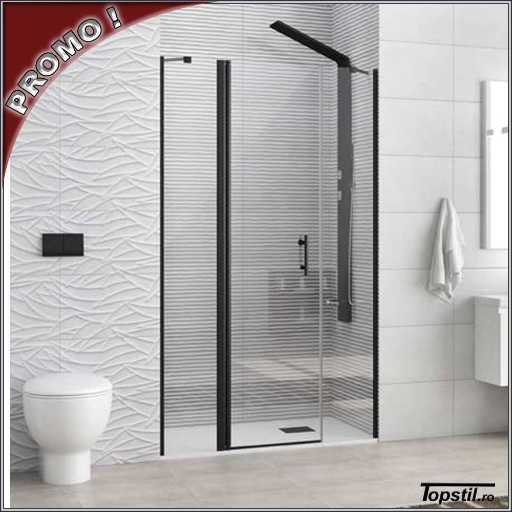 Paravan dus cu usa Cadura cu profil negru, 100 cm