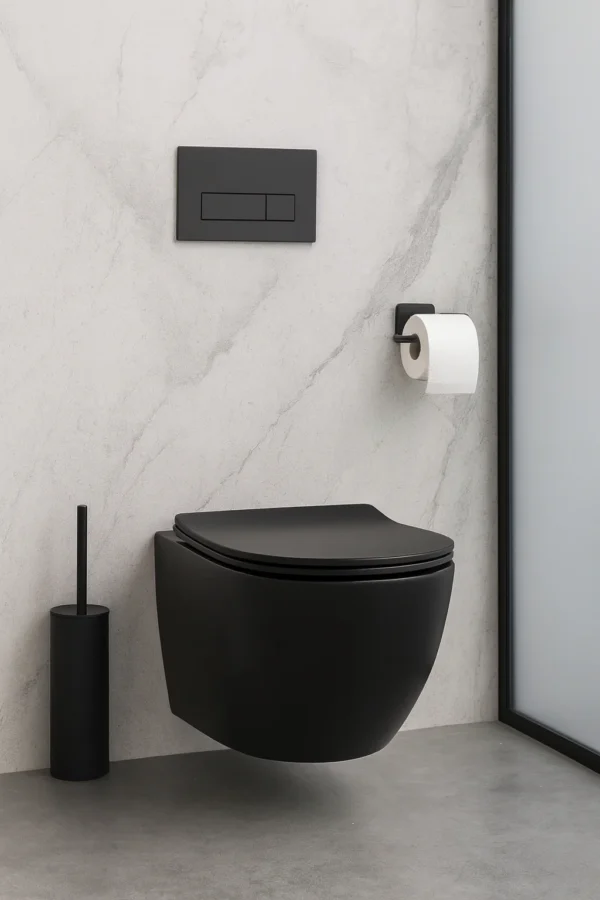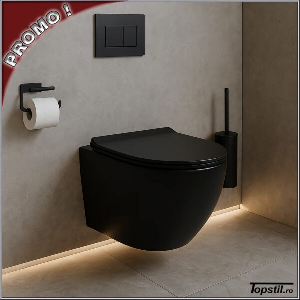 Wc suspendat Lamia negru mat, sistem de fixare mascat,spalare circulara Tornado.