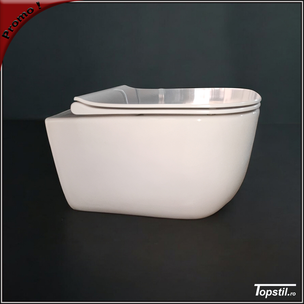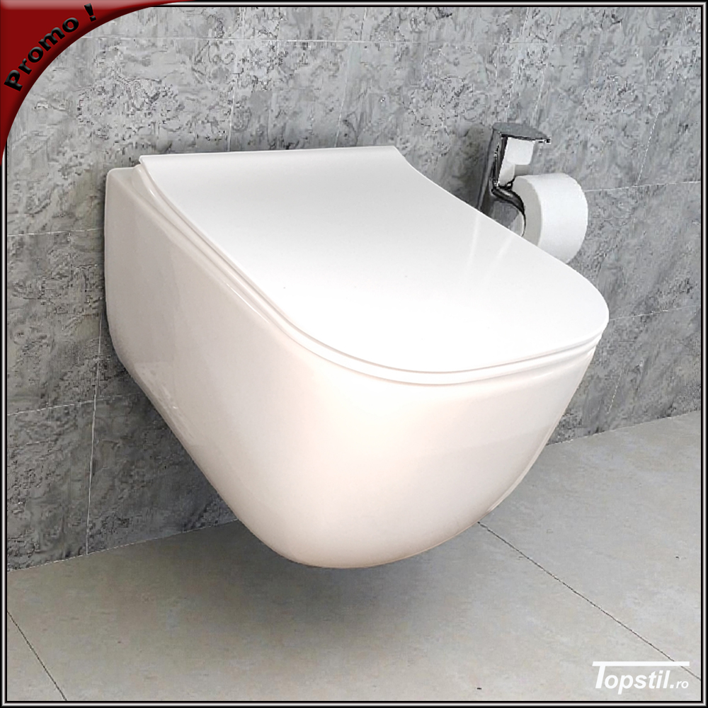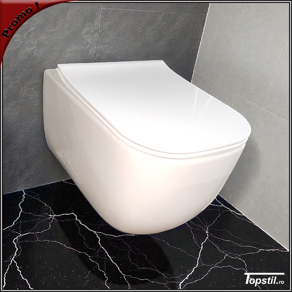 Vas wc suspendat Orion cu spalare rimless,la pachet cu capac soft-close,detasabil din buton.